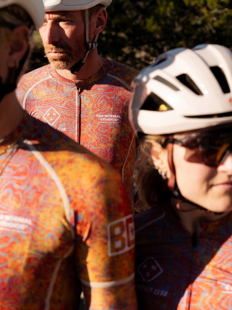 That rhythm is what makes the collaboration land. Pas Normal Studios has always approached cycling from a more refined, almost controlled perspective. Breakfast Club ATX brings the opposite. Something social, fluid, and rooted in real participation. The kit ends up sitting in between those two ideas.
