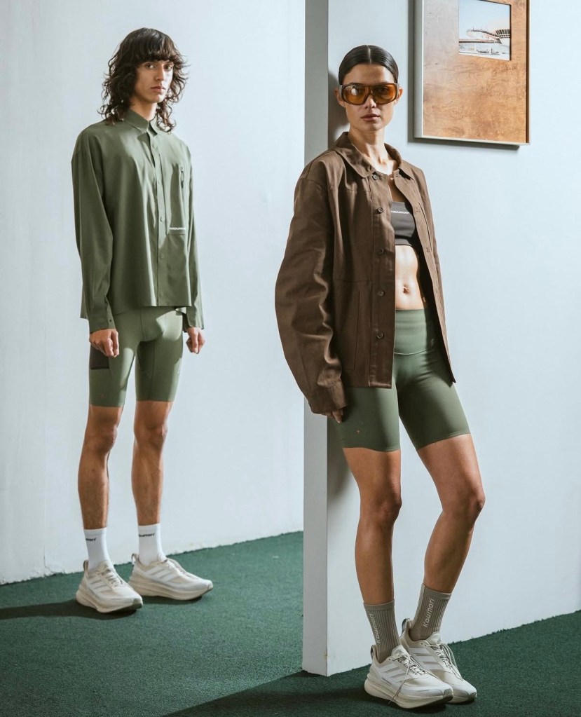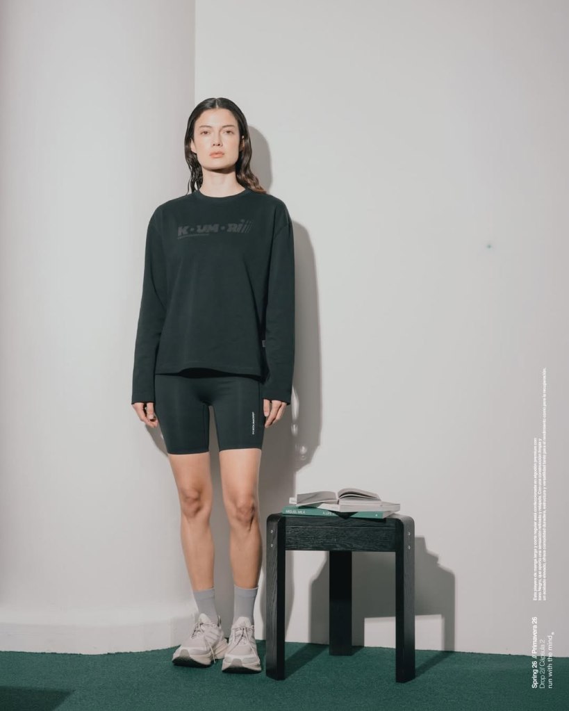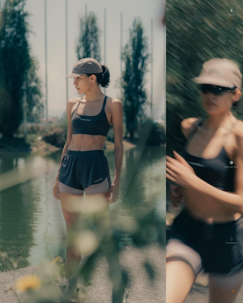 What stands out more is how the garments transition. Performance bras, half tights, and running shorts sit next to structured outerwear and minimal shirting without feeling disconnected. The same piece that exists mid run can exist hours later in a completely different setting. That overlap is intentional. It removes the separation between running and everything around it.