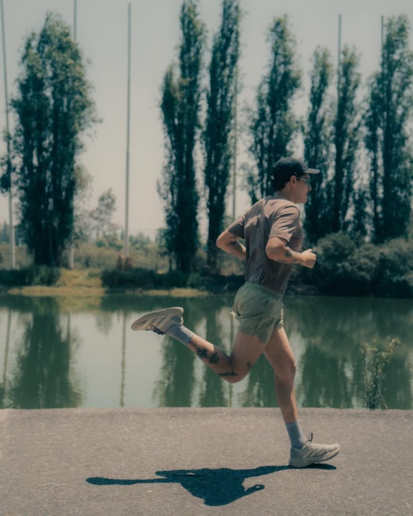 The visuals sit between motion and stillness. One moment the body is in full stride, blurred and almost disappearing into the environment, and the next it is completely still, isolated, almost sculptural. That contrast defines the entire capsule. Running is present, but it is never loud. It is internal.